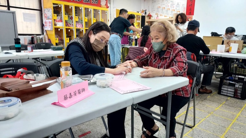 • 照片說明文字前來就診的病患,大多數屬於慢性病的老顧客,也是相信本基金會義診中醫師的專業服務, 才會特地來排隊參加一個月僅辦理一次的義診服務。